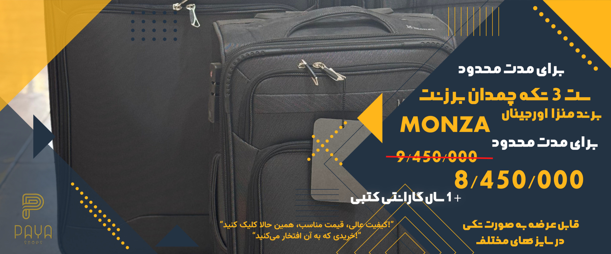 با پایا، لذت خرید ایمن و آسان را تجربه کنید. با داشتن نماد اعتماد الکترونیکی “اینماد”، ما اطمینان خاطر شما در محیط آنلاین را تضمین میکنیم. همچنین میتوانید در فروشگاه فیزیکی ما در یزد، خیابان قیام، روبروی بانک ملت حضور یافته و از مجموعهای متنوع و باکیفیت بازدید کنید.